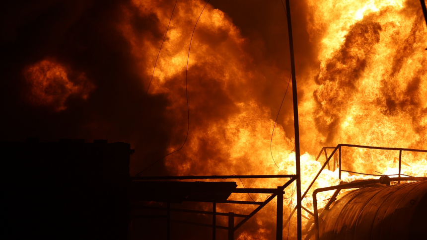 Пожарные борются с огнём на двух резервуарах с топливом. Пострадавших нет, на месте происшествия работают сотрудники МЧС, проводятся необходимые мероприятия по ликвидации последствий, сообщил глава региона Андрей Клычков.